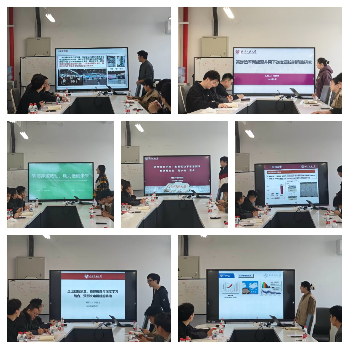 比赛中,参赛同学在三分钟内,围绕研究背景、核心问题、研究方法与创新点,以凝练的语言和清晰的逻辑展示了各自科研工作。内容涵盖能源系统优化、并网逆变器控制、数据驱动的火电机组预测、智慧园区毫秒级调度,以及储能领域的锂枝晶生长、光热电站调频、波动平抑等前沿方向。整场比赛科普氛围浓厚,展现了学院研究生扎实的学术基础与良好的科研素养。